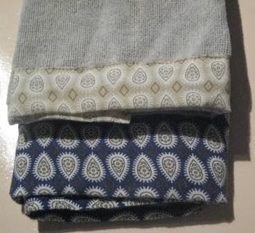 As toalhas que tenho a uso na cozinha vão ficando velhinhas e a necessitar de ser substituídas, por isso, comprei turco ao quilo no Continente, com restos de tecido que tenho em casa, fiz 2 toalhitas. Já estão a fazer a sua função.